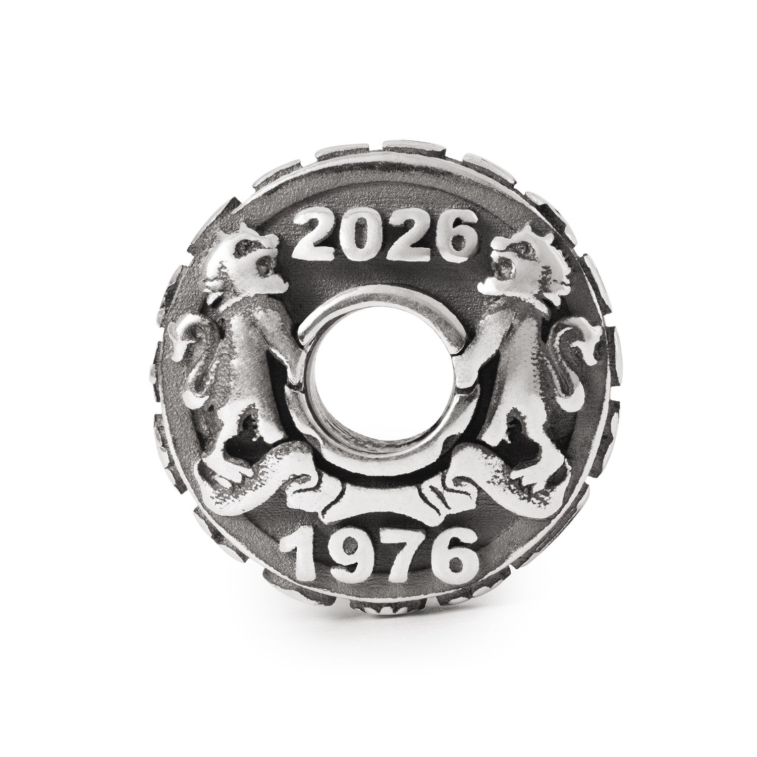 50년 간의 특별한 이야기를 기념하며....트롤비즈 50주년 기념 리미티드 에디션 비즈코인 형태의 비즈에 트롤비즈의 50 주년을 기념하여 '1976'과'2026'이 트롤비즈 로고와 함께 양각된 비즈.테두리에 'Trollbeads' 문구와 함께 다양한 심벌이 새겨진 디자인의 비즈.
